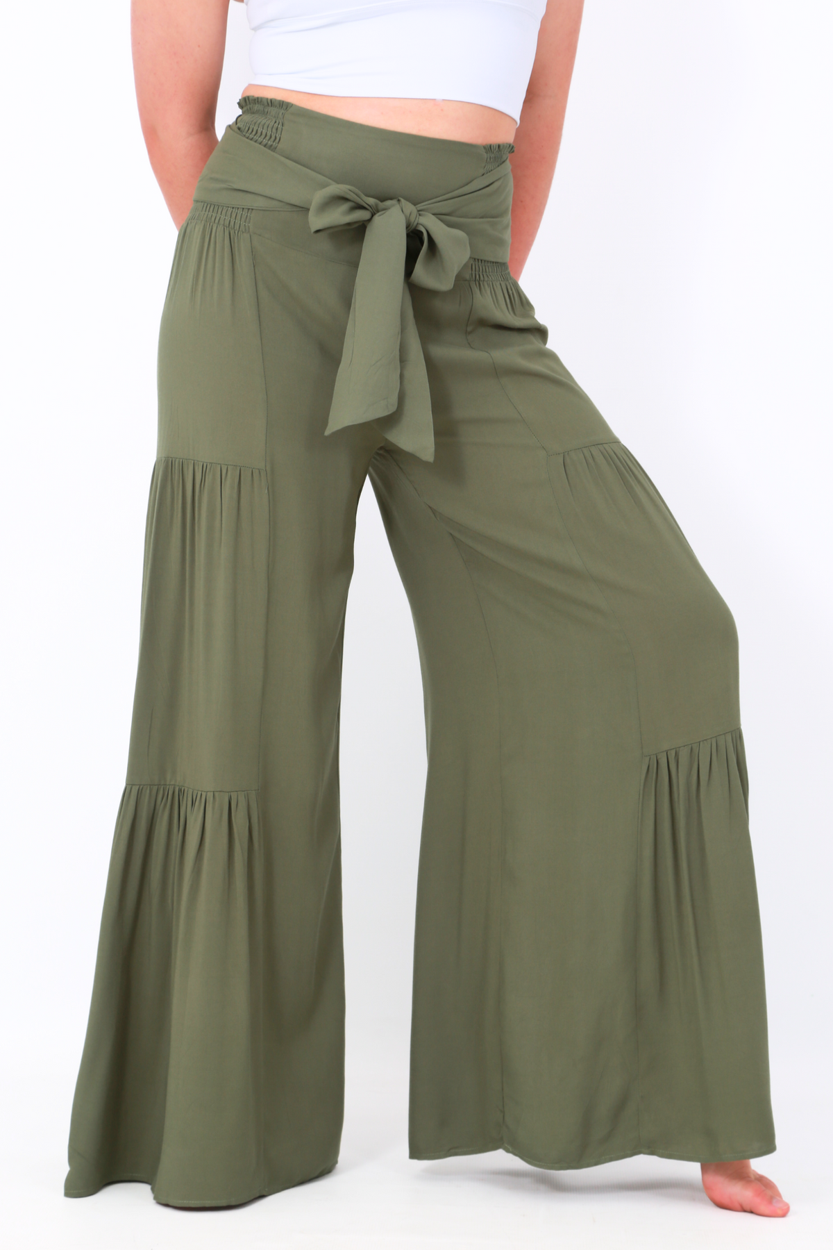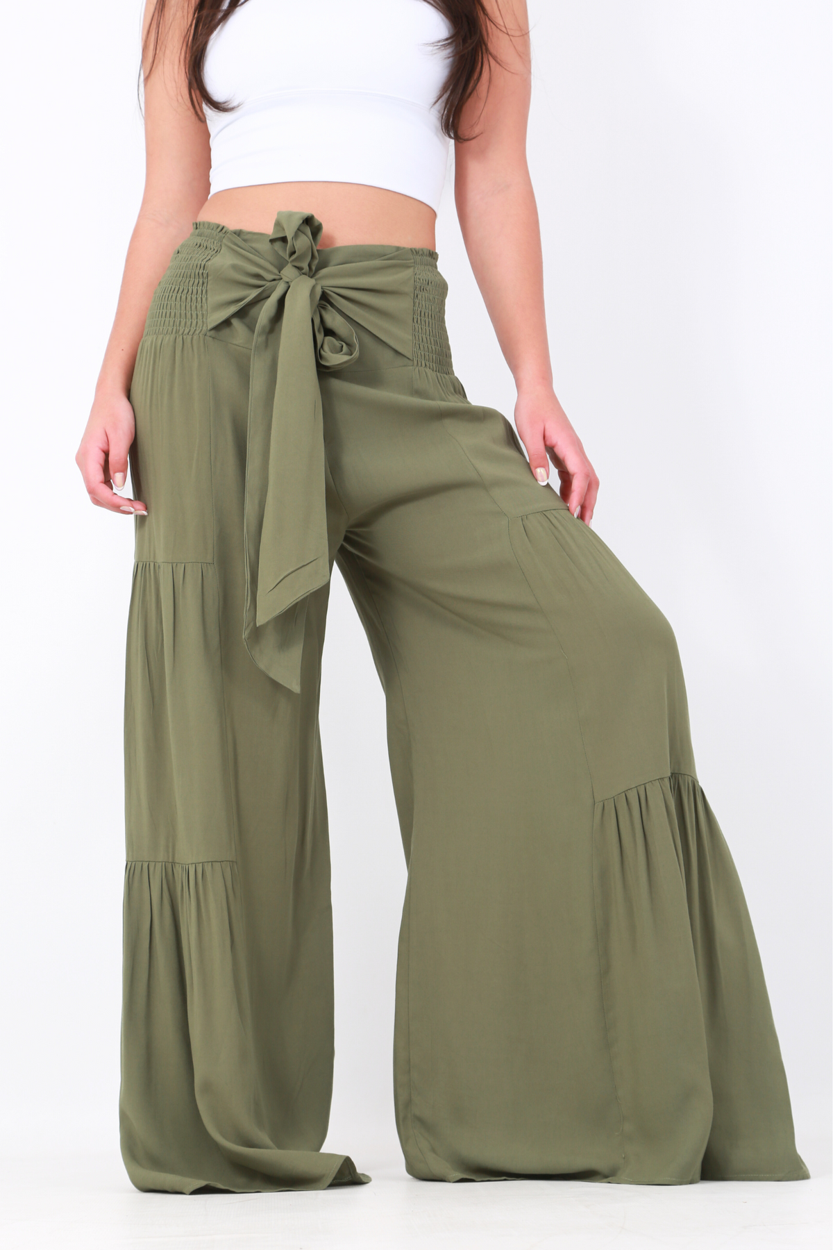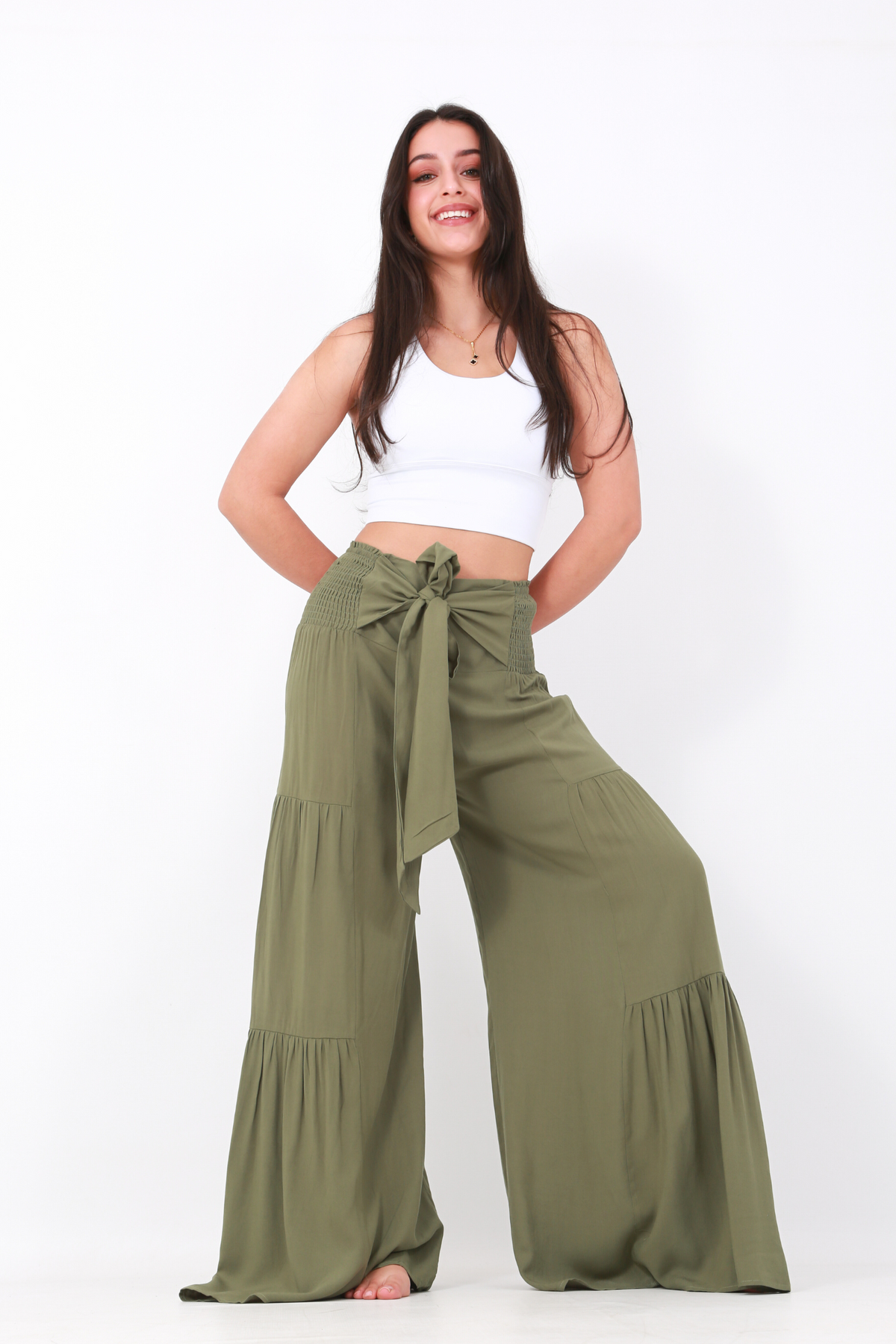 Happy Pants -tie wrap palazzo pants -Greenaos-init aos-animate